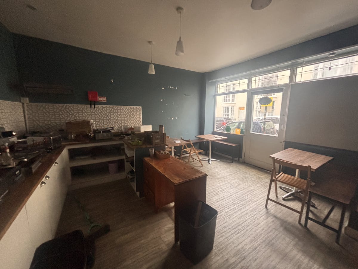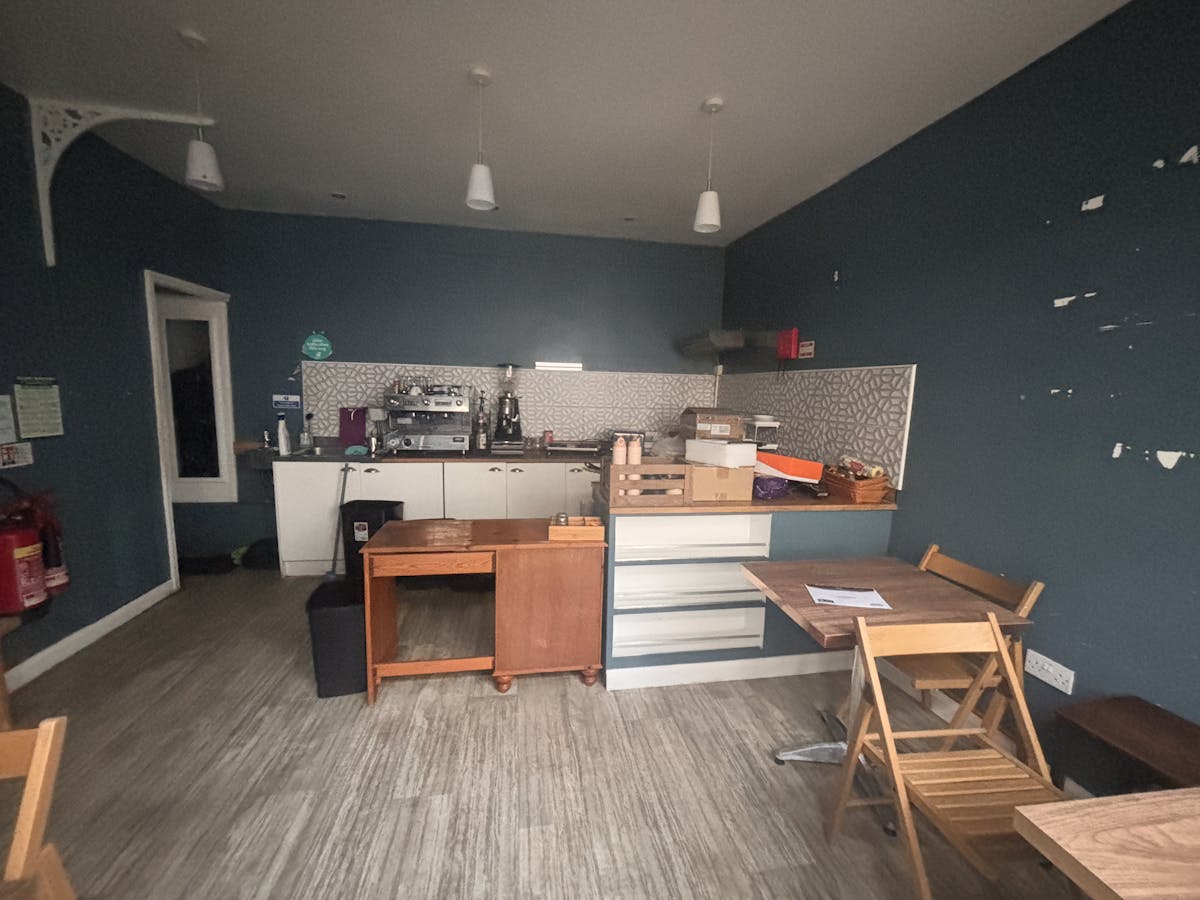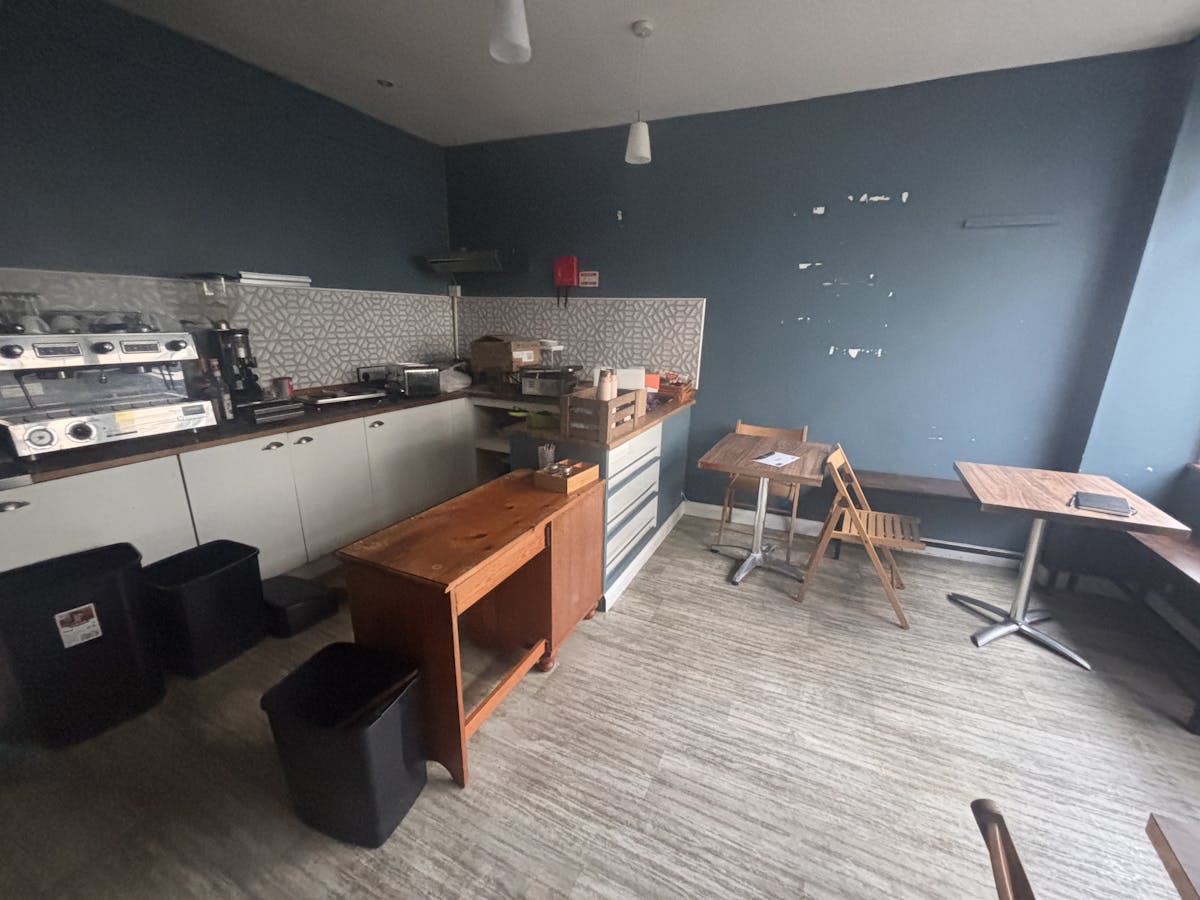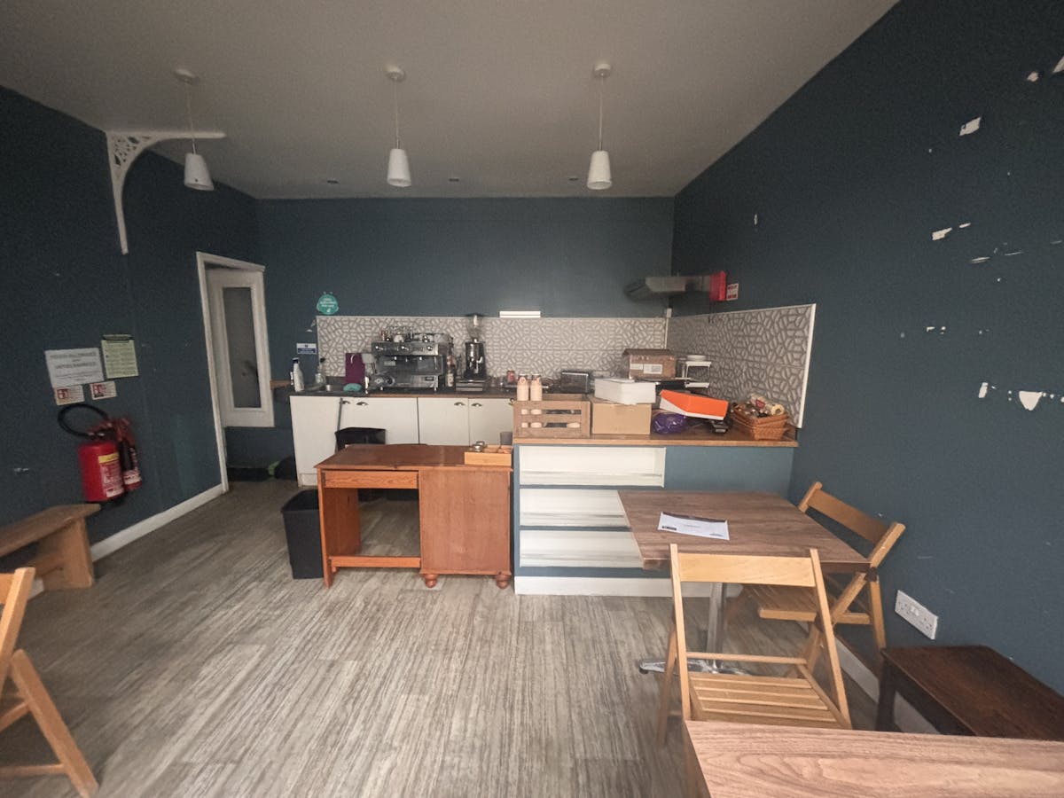 Former Sandwich bar/coffee shop open plan ground floor space with lower ground floor prep area/ storage with W.C.