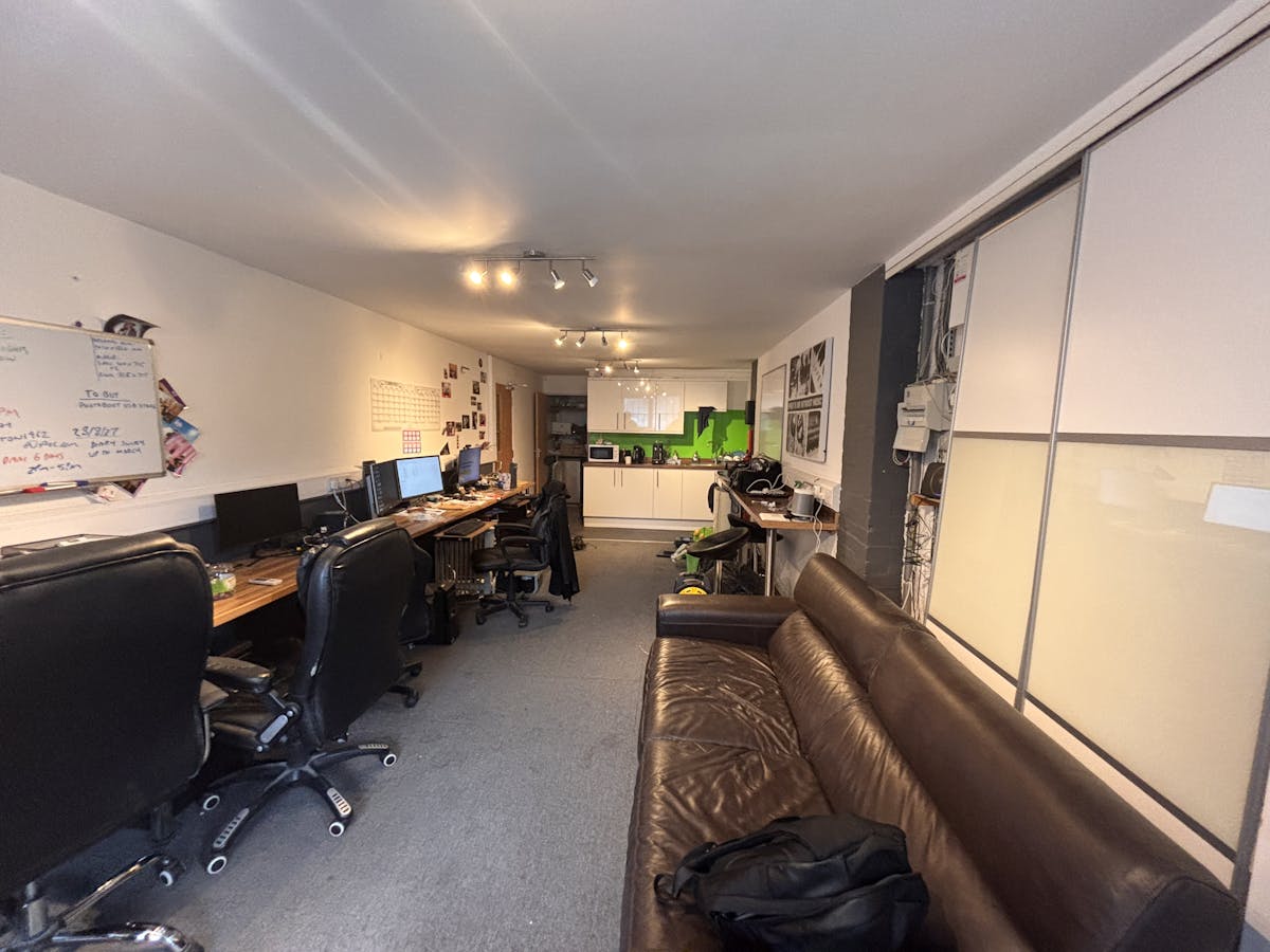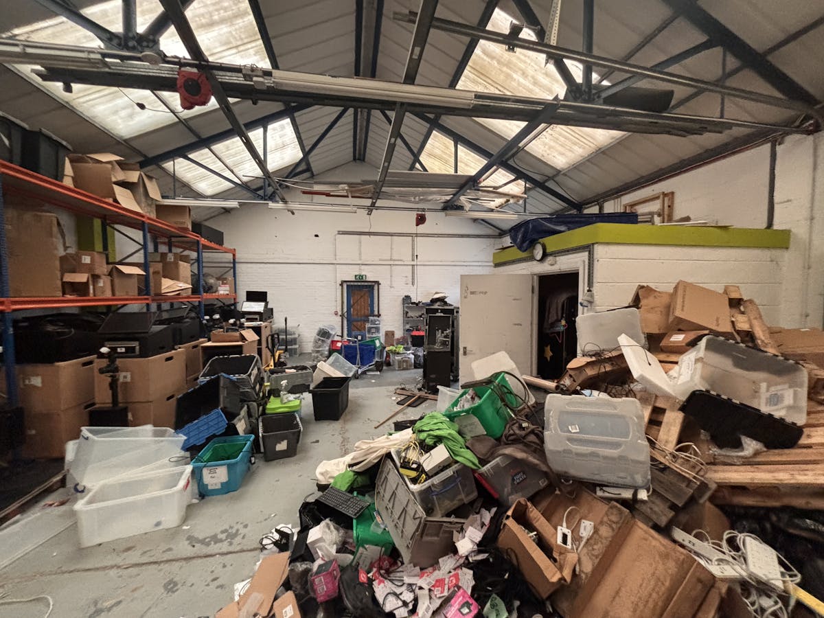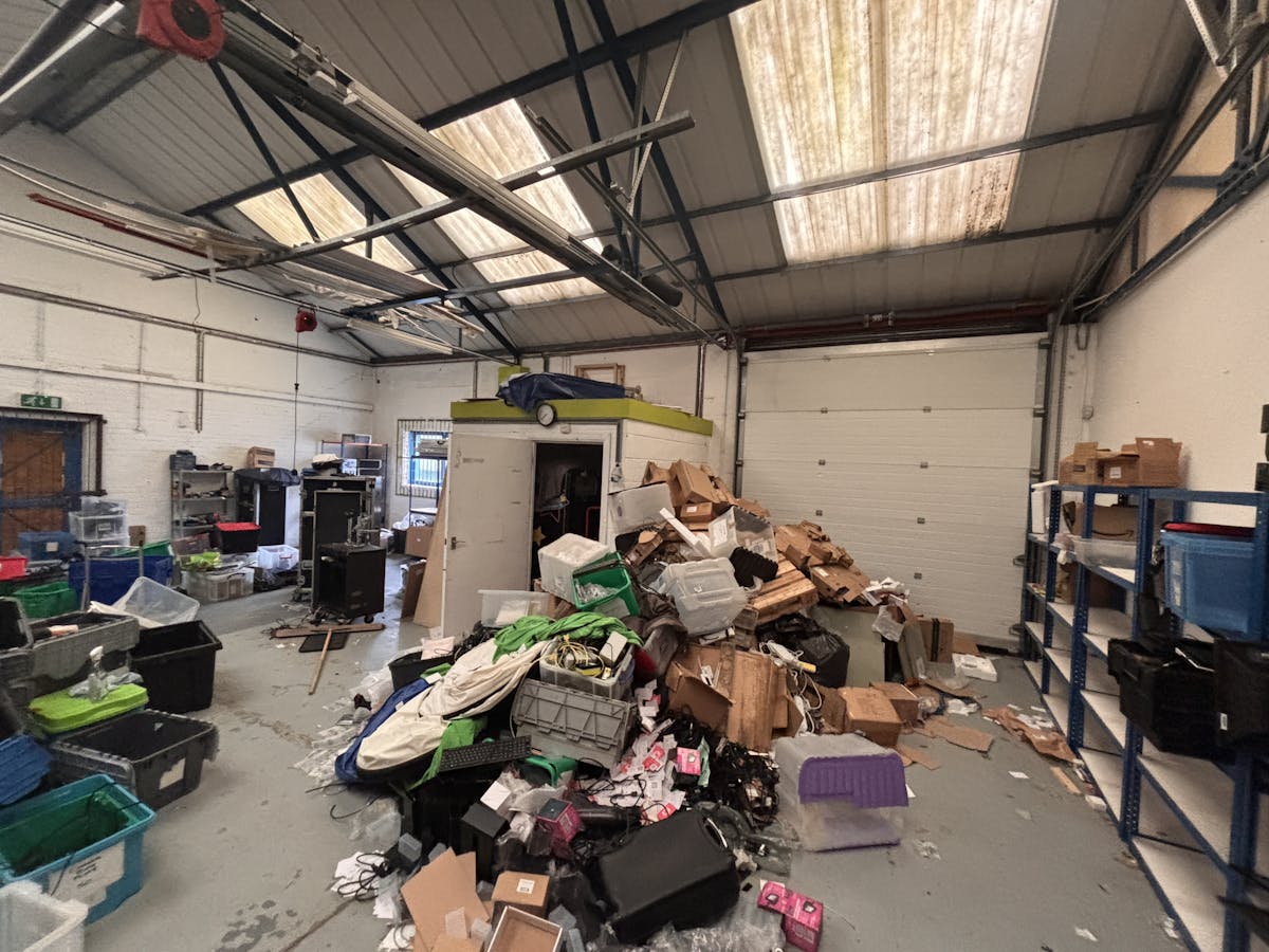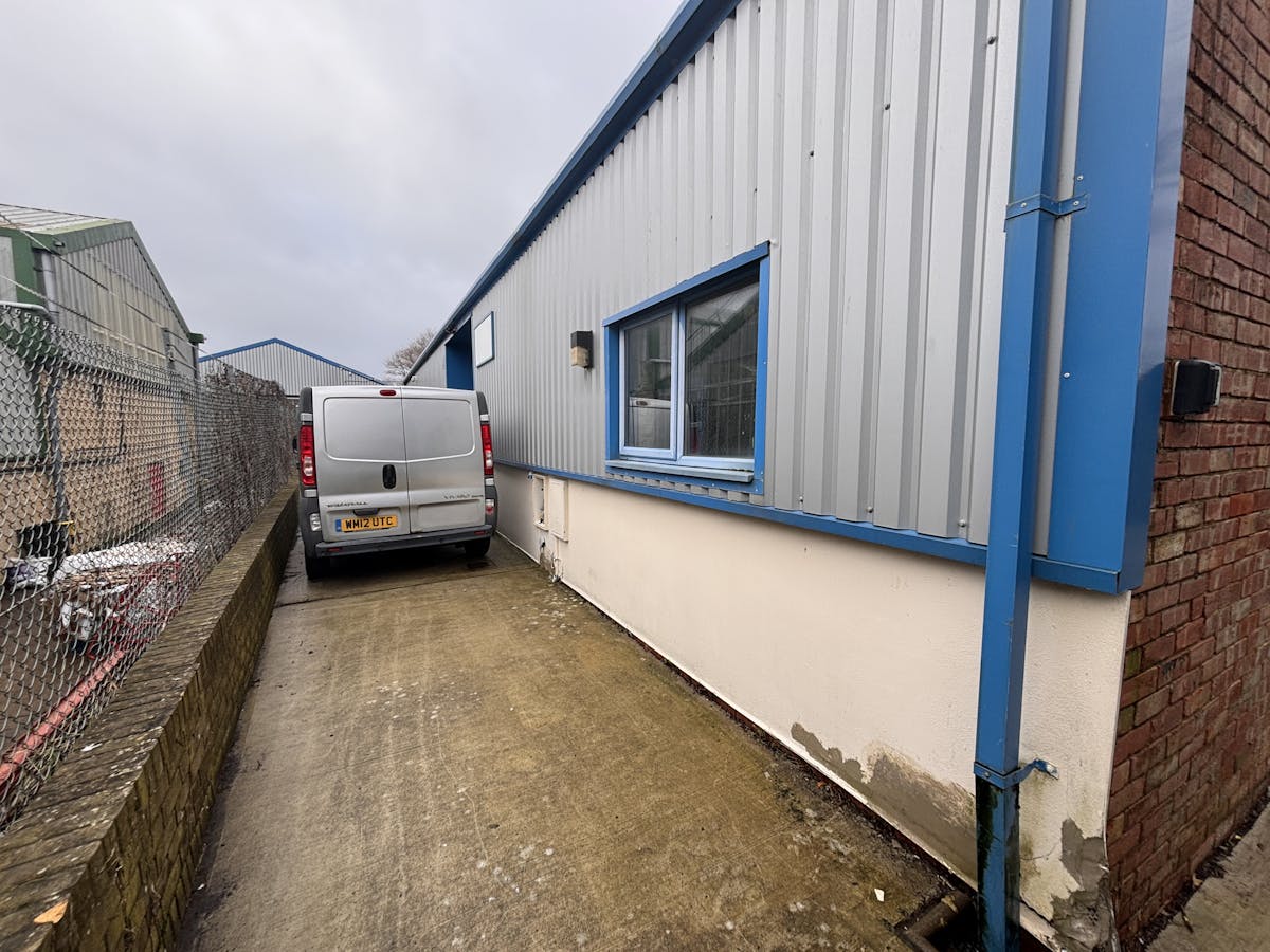 The unit benefits from access via two roller shutter doors, front and side, with pedestrian entrance it also includes a mezzanine level for storage & office. There is parking space for two cars at the front of the unit, with additional external space to side for parking and rear parking area/ storage space.